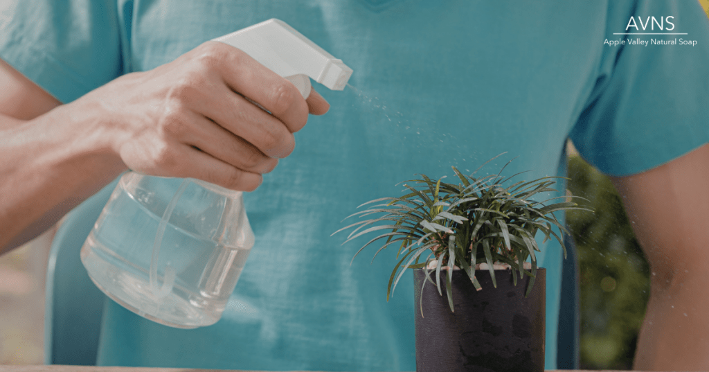 A diluted castile soap spray deters common houseplant pests like aphids, spider mites, and whiteflies, without leaving toxic residues that harm the plant or the soil.