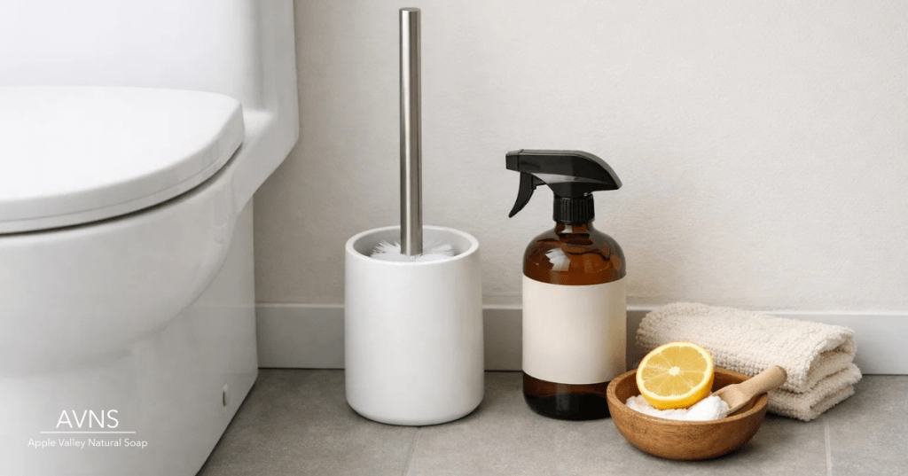 Pour castile soap into the bowl, let it sit for a few minutes, scrub, and flush. It cleans effectively without toxic fumes that make your bathroom feel like a chemistry lab.